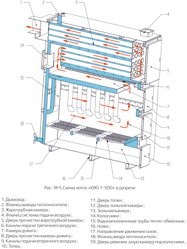 • Уникальность конструкции: она позволяет использовать любой вид твердого топлива (уголь, древесину). Также в котле используется регулируемая система распределения подачи воздуха в зоны активного горения и дожига, что позволяет максимально эффективно управлять процессом сгорания топлива в камере при различной мощности котла; Топка котла представляет собой засыпную камеру, имеющую развитую поверхность теплообмена со всех стенок, потолка, части дна, оборудованную водотрубным теплообменником, что позволяет сделать процесс горения максимально эффективным.